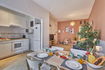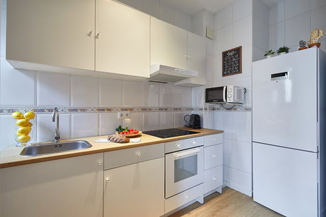 Todos los apartamentos gozan de una amplia y luminosa zona salón comedor + cocina americana totalmente equipada para cocinar durante tu estancia. Además, tiene una pequeña terraza que te permitirá disfrutar del buen clima que ofrece el mediterráneo.