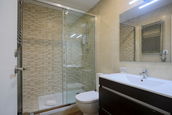 Plato de ducha con mampara de vidrio templado
