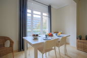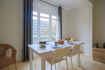 Este apartamento vacacional de 115 m² puede alojar hasta ocho personas, con tres dormitorios, dos baños, cocina totalmente equipada, un salón y un balcón.