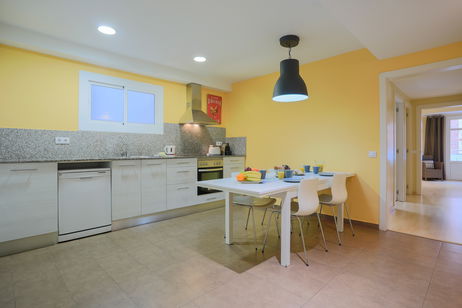 Este apartamento vacacional de 115 m² puede alojar hasta ocho personas, con tres dormitorios, dos baños, cocina totalmente equipada, un salón y un balcón.