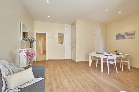 Moderno apartamento (90 m²) situado en el Eixample Esquerra, ofrece un amplio espacio para la comodidad de todos sus huéspedes. Tiene dos dormitorios con cama de matrimonio y un gran salón con sofá-cama, que puede acomodar a una persona adicional. Su mejor característica es la ubicación, justo en el centro de la ciudad. También ofrece a sus huéspedes todo el confort y la comodidad de un hogar lejos del hogar.
