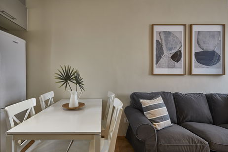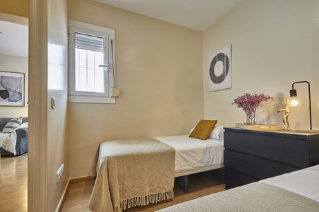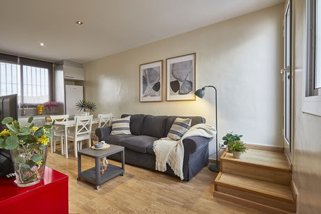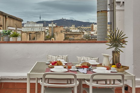 Moderno apartamento (50 m² + terraza de 50 m²) situado en el Eixample Esquerra, ofrece un amplio espacio para la comodidad de todos sus huéspedes. Tiene dos dormitorios, una habitación con cama de matrimonio y otra habitación con dos camas individuales. Su mejor característica es una muy acogedora terraza para disfrutar al máximo del fantástico clima de Barcelona.