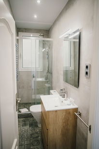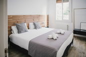 FIRA IV es un apartamento recientemente reformado, ubicado en una tranquila calle a escasos metros del Palacio de Montjuïc, del recinto ferial de la Fira y de Plaza de España. Se encuentra en la tercera planta de una finca regia construida en 1955.